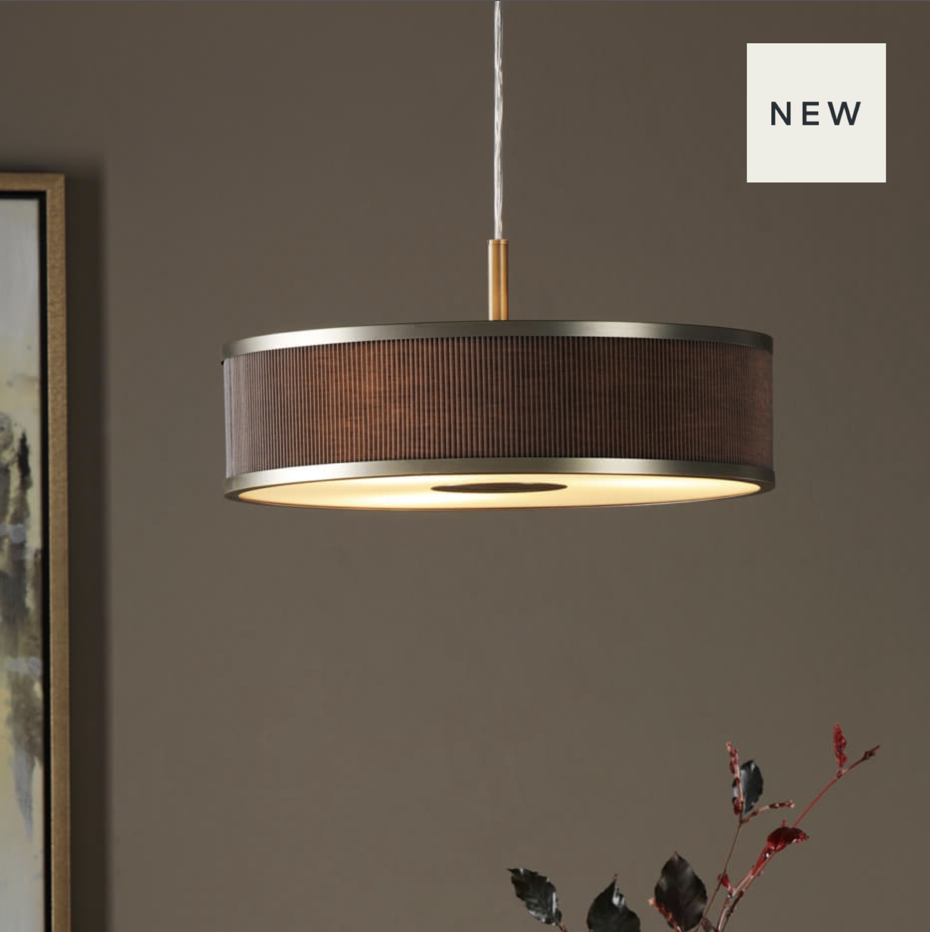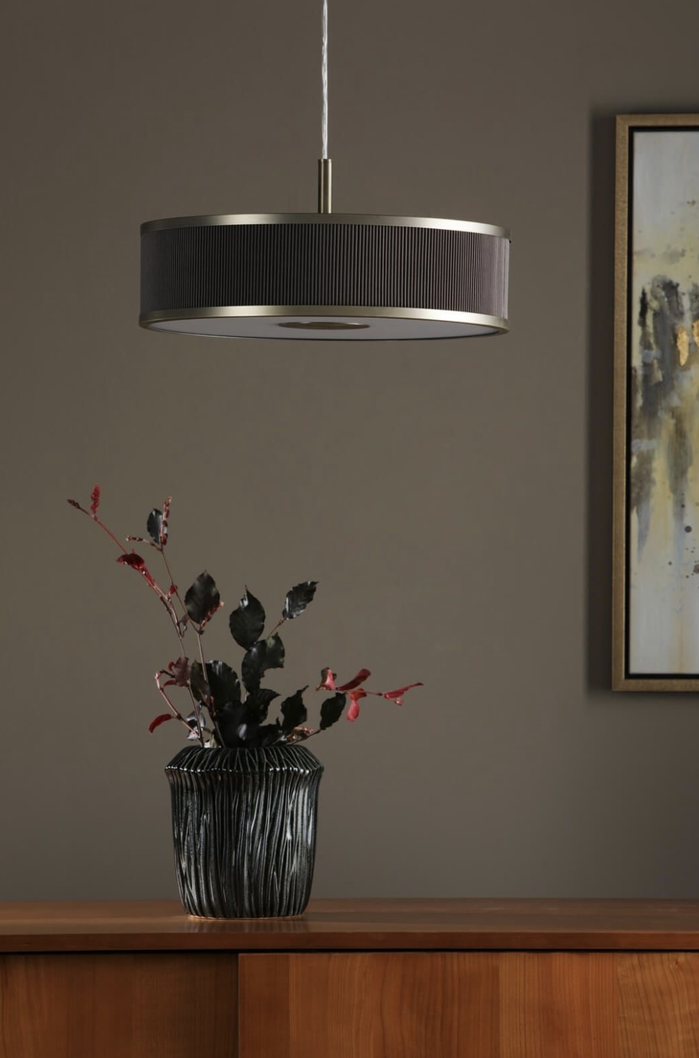 Home / Shop Lighting / Ceiling / Pendants / Feature Pendants/Chandelier / Alva - Modern Pendant Light - Antique Bronze and Brown Micropleat - 40cm