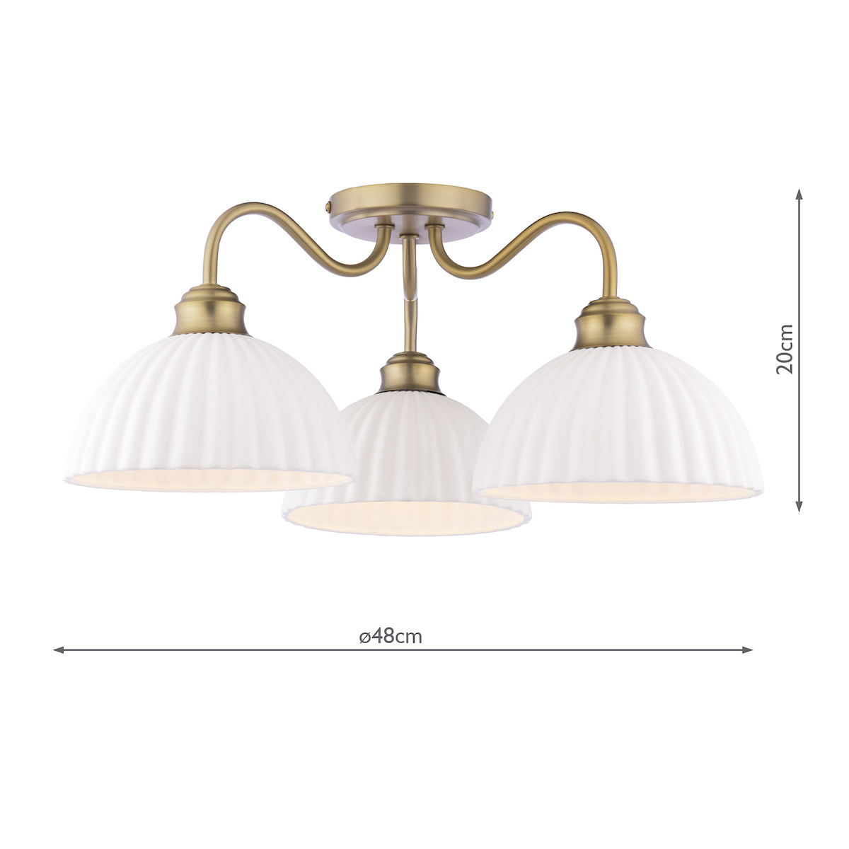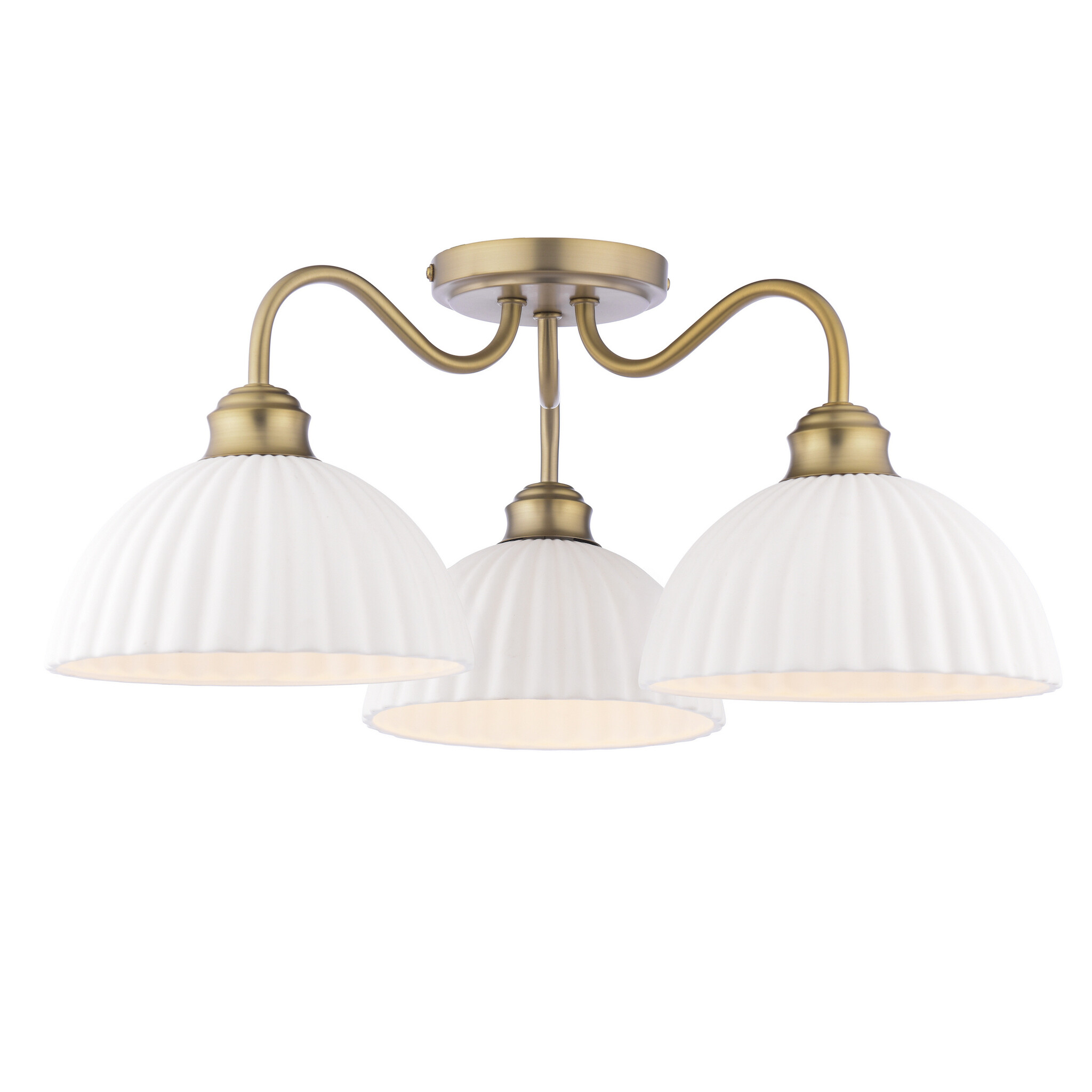 Home / WINTER SALE / Laura Ashley Durford 3 Light Semi-Flush Ceiling Light – Matt Antique Brass and White Ceramic