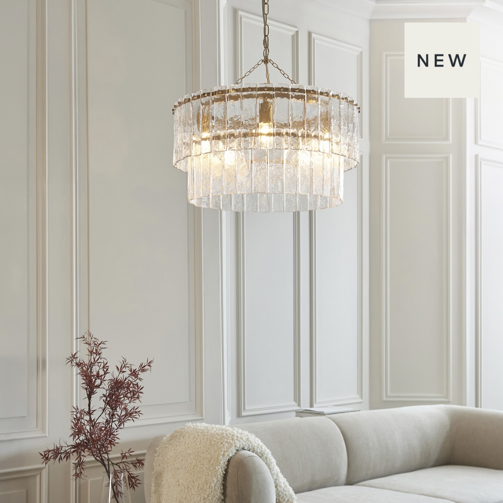 The Liora collection is a beautifully cohesive family of ceiling lights with matching wall lights, featuring small, medium, and large two-tiered pendants alongside a coordinating wall light. Gracefully layered and meticulously crafted, each piece takes inspiration from vintage Venetian art lighting — perfect for creating a unified, elegant look across open-plan or connected living spaces.