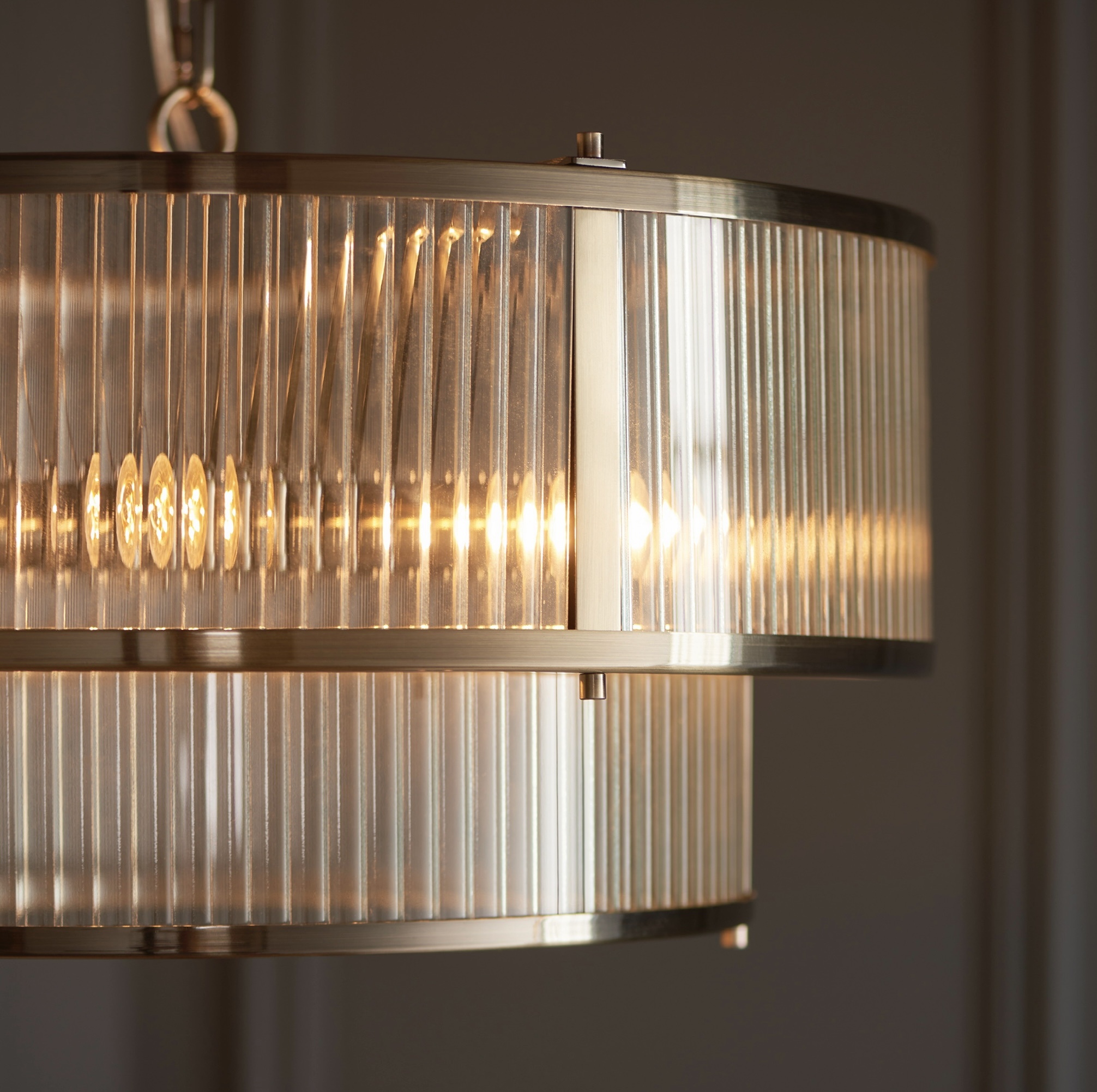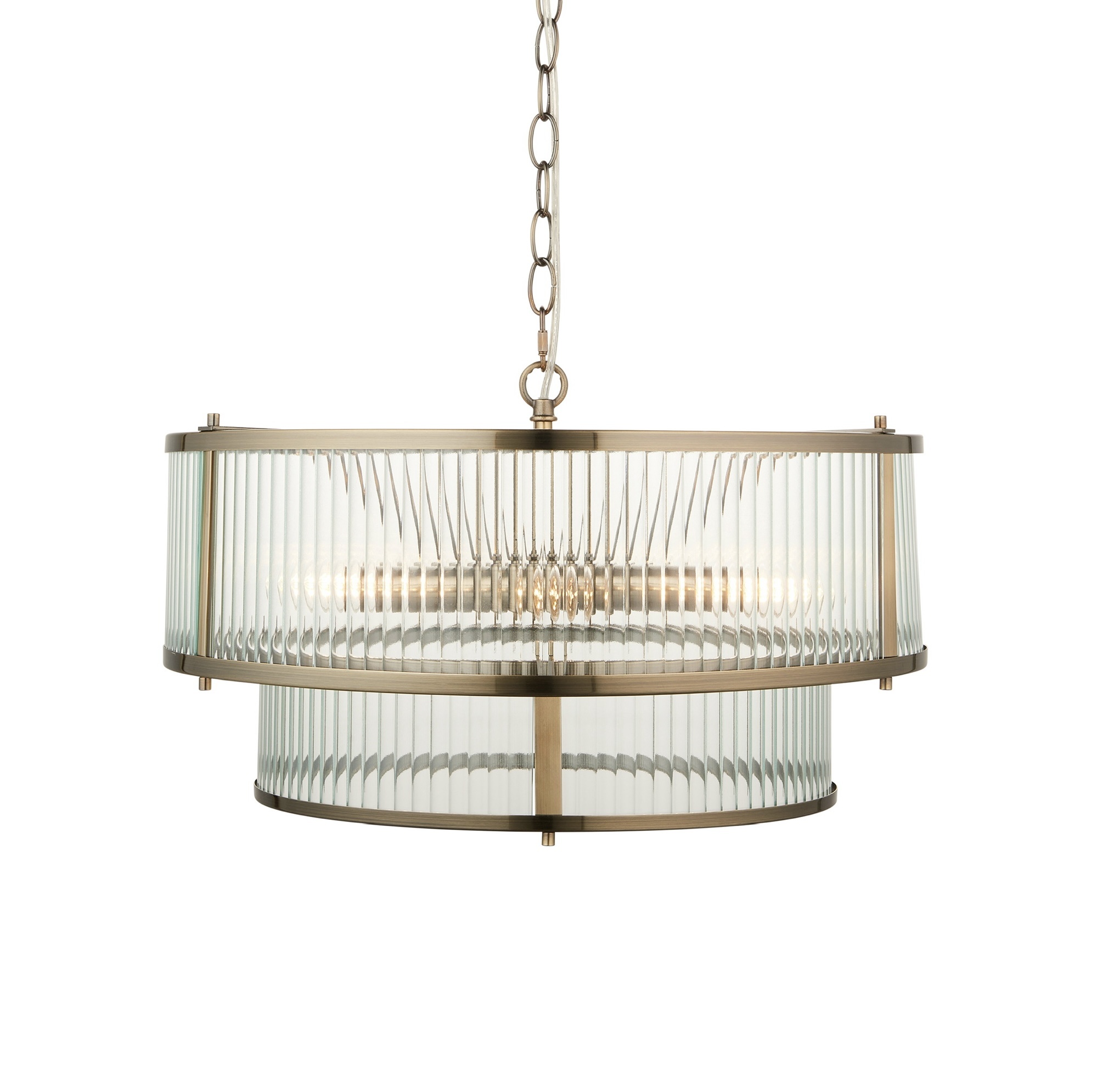 Home / WINTER SALE / Morgan - Two Tiered Ribbed Glass Chandelier Pendant - Antique Brass