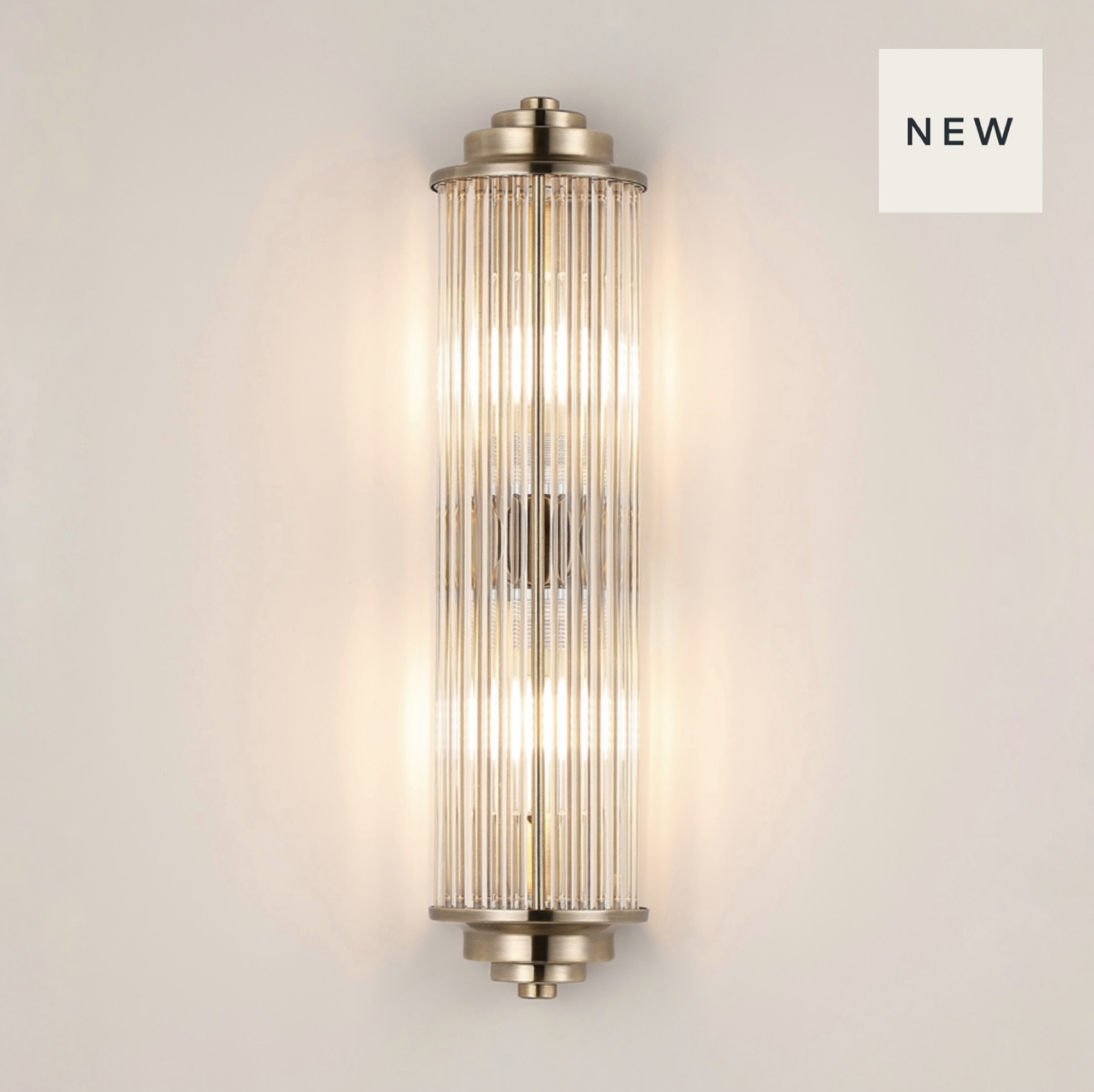 Home / WINTER SALE / Tai - Two Light Wall Light with Glass Rods - Antique Brass